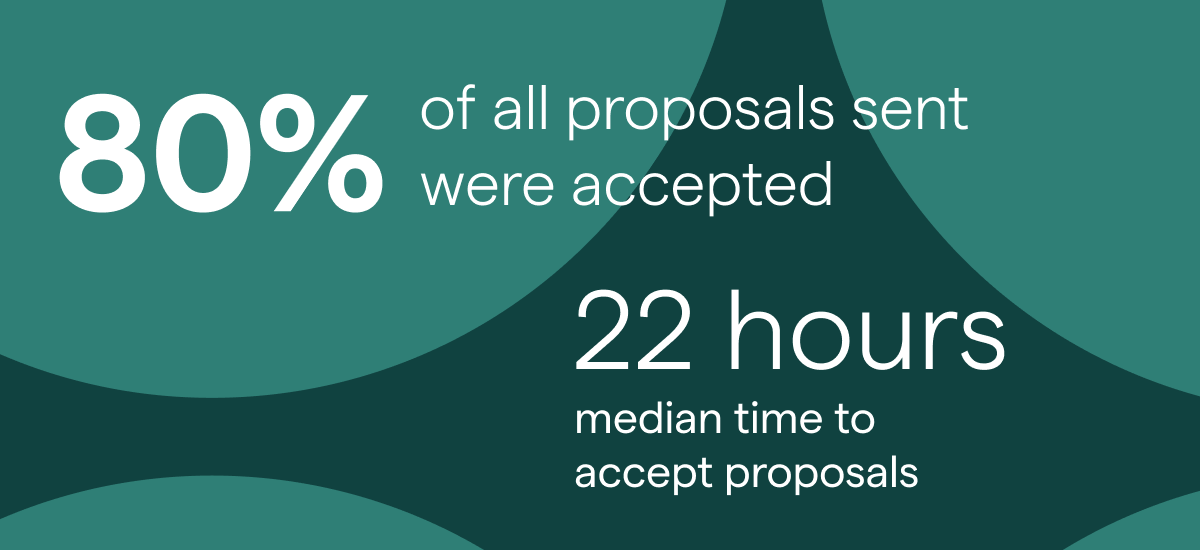 The median time it took clients to accept their proposals? Just 22 hours. That’s less than a single day! It comes as no surprise to us, with customers taking advantage of features such as readymade and custom proposal templates, and proposal options. They’ve been able to provide a seamless client experience using Ignition’s video embed capabilities and multiple-signature proposals.