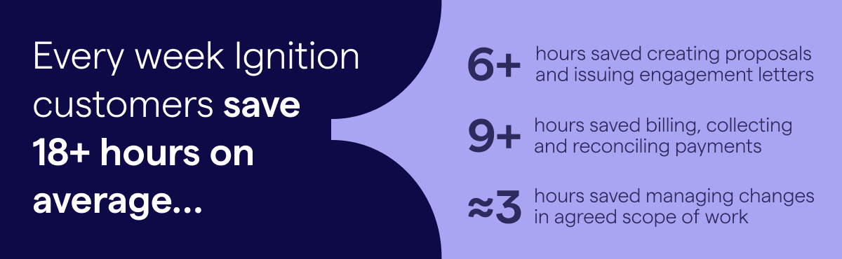 Thankfully, Ignition customers had more time on their hands for all those commitments. They saved on average over 18 hours per week engaging clients, managing scope changes, and billing, collecting and reconciling payments.