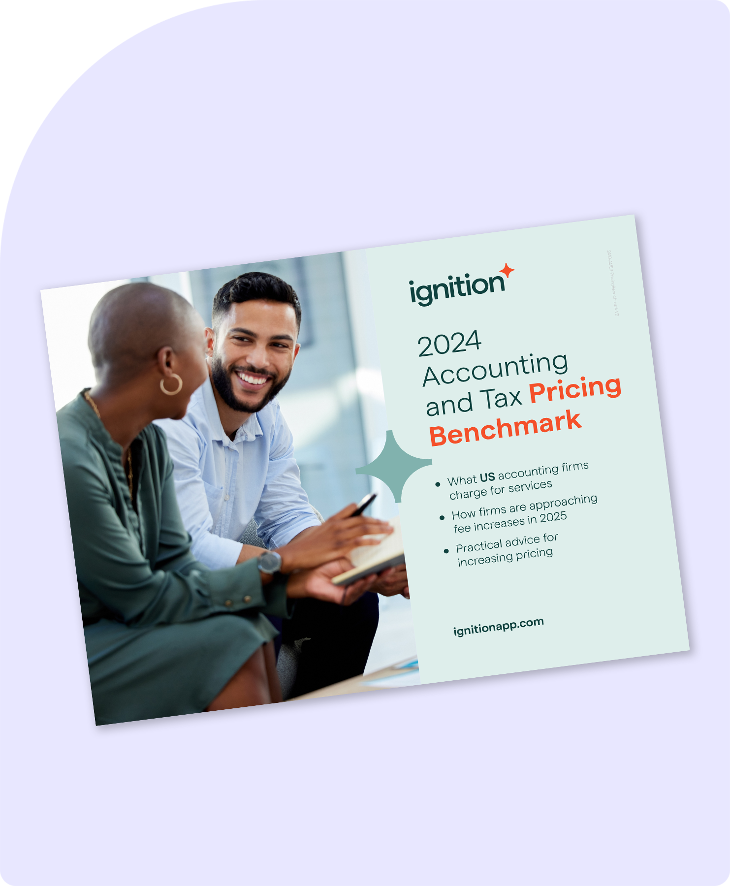 Discover how your firm's pricing compares to other US firms with Ignition's 2024 US Accounting and Tax Pricing Benchmark. Get insights on current fees, pricing models and planned increases for common accounting and tax services. Stay informed and confidently adjust your firm’s pricing to boost revenue in 2025.