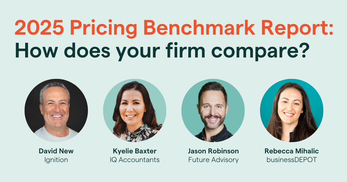 Influential accounting thought leaders Jason Robinson (Future Advisory), Kyelie Baxter (IQ Accountants), and Rebecca Mihalic (businessDEPOT) dive into the benchmark data and share invaluable insights to help you effectively increase prices and maximise your firm's revenue and profitability.