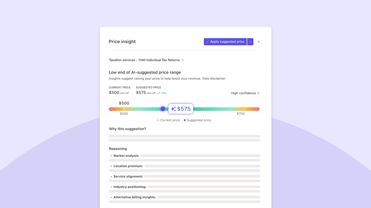 Alongside Price Insights, AutoPricing helped businesses maintain consistency across their client base, updating fees at scale without manual recalculations or custom spreadsheets. Together, these tools made pricing more transparent, more informed, and more aligned to the true value of a firm’s expertise.