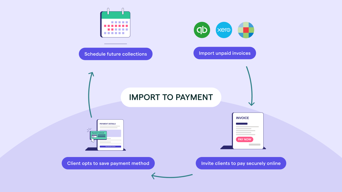 The new Import to Payment workflow gave businesses the ability to pull unpaid invoices from their accounting system into Ignition, invite clients to pay online, and schedule future payments automatically once a method was saved. This created a unified flow across systems and reduced the need for manual follow-up.