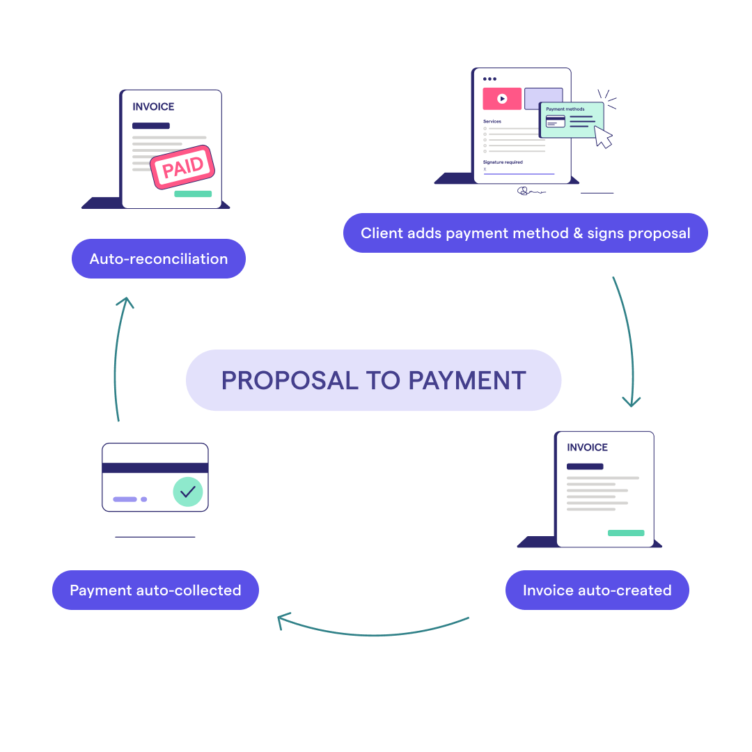 - Proposal-to-payment automation removes manual invoicing and collections while ensuring client payment details are secured from the start.