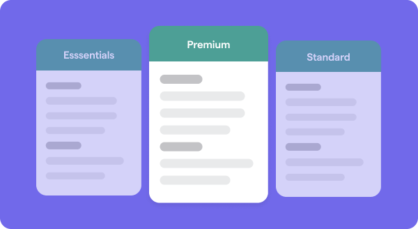 Three-tiered packages (starter, professional, premium) help you address different client budgets while showcasing the full range of your services. Highlighting how value increases across tiers shows clients what makes each level unique.