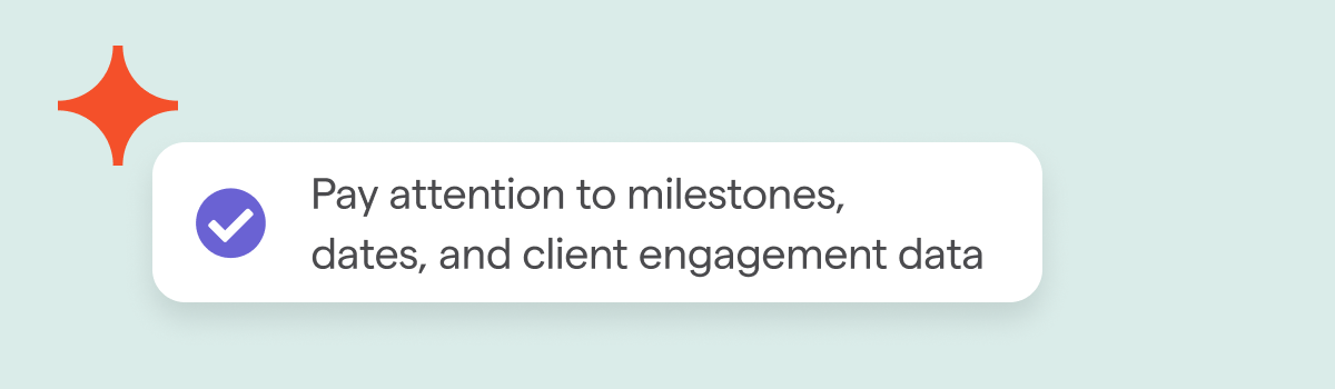 Every client engagement comes with deadlines that you need to pay attention to. From deliverable milestones to contract renewal dates, it’s essential to have ample data visibility, so you can take the necessary action.