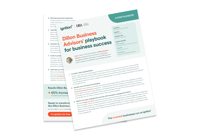What’s more, Ignition enabled DBA to implement its own innovative three-tiered pricing system, offering Essential, Premier, and Elite core packages for CAS. "We accept clients only in one of those offerings now,” says Marcus. This strategic approach has streamlined the firm’s service offerings and significantly boosted its revenue generation capabilities.