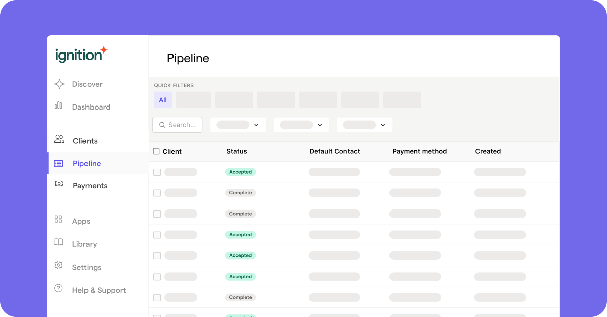 "It would've been ridiculous charging numerous client credit cards every month. With Ignition, we create an agreement, enter the payment information, set up the payment plan, and it's done. The fact that it integrates with QuickBooks eliminates an amazing amount of manual work," he shares.
