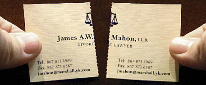 He’s a divorce lawyer who’s card rips in half. Clever eh?