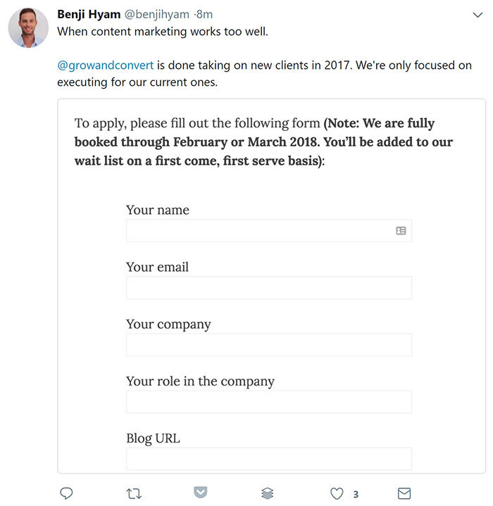 If you’re already crushing it and can’t handle your current number of clients, start a waiting list to collect information from clients