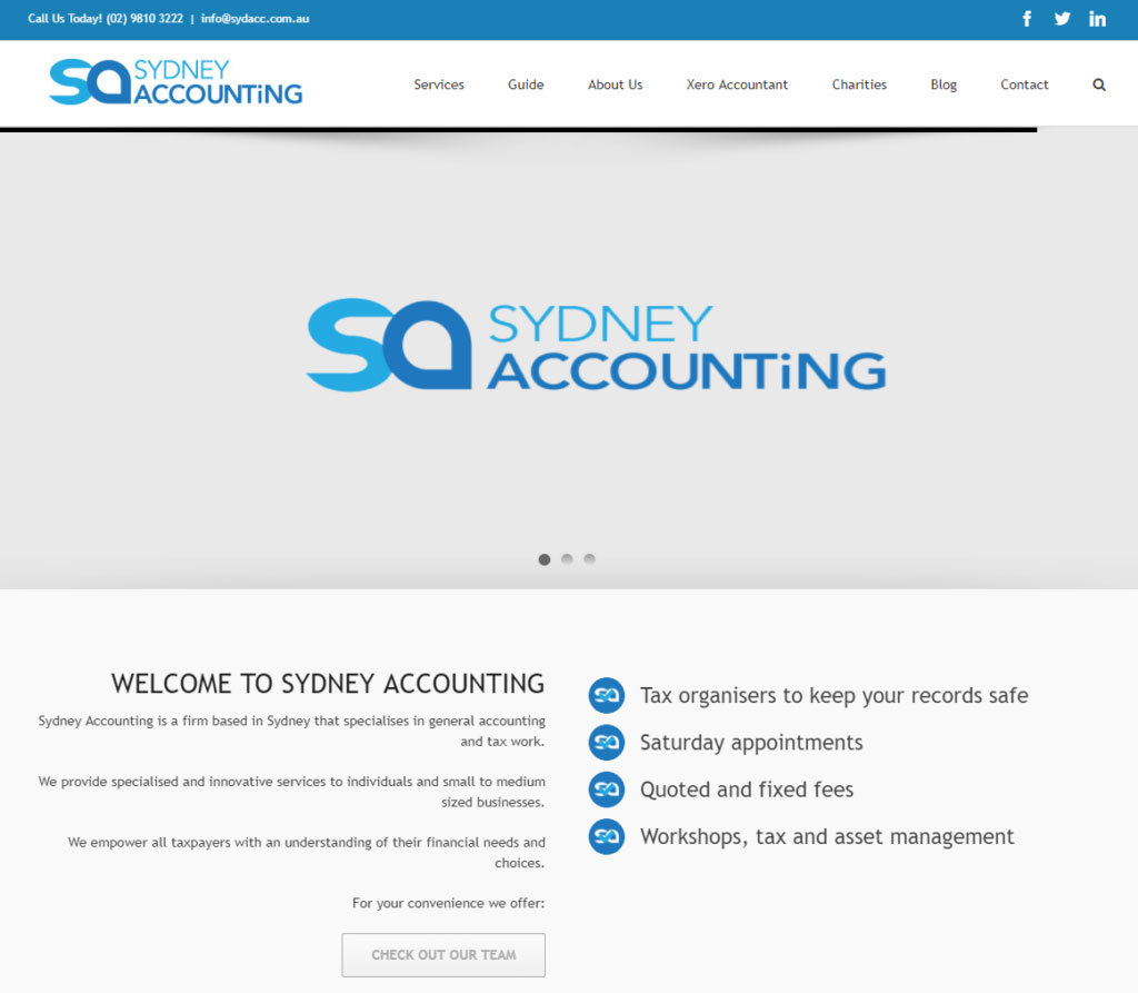 Sydney Accountants is an example of having no clear CTA on their site: