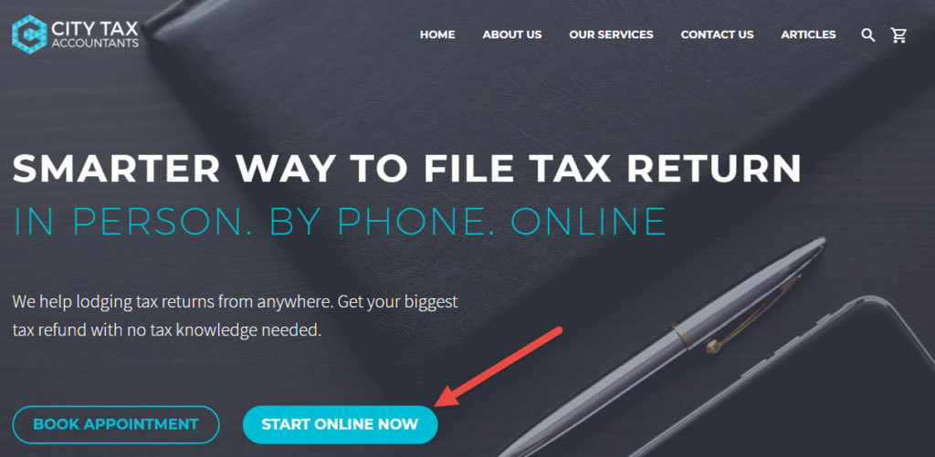 City Tax Accountants do it right. They have one main CTA on their website which is the next logical action for the user: