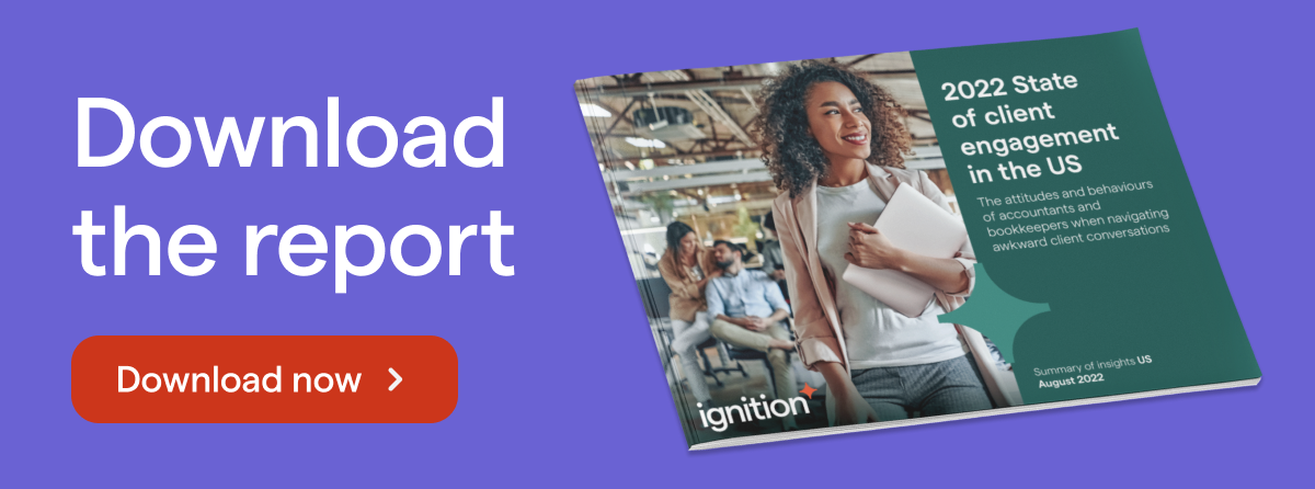 And once again, the Toweys aren’t outliers here. Ignition’s State of client engagement report found that, of the more than 500 American accountants and bookkeepers surveyed, 89% had avoided or delayed having an awkward conversation with a client, and 43% of those who experienced increases in the scope of client work ended up absorbing the increased time and cost themselves.