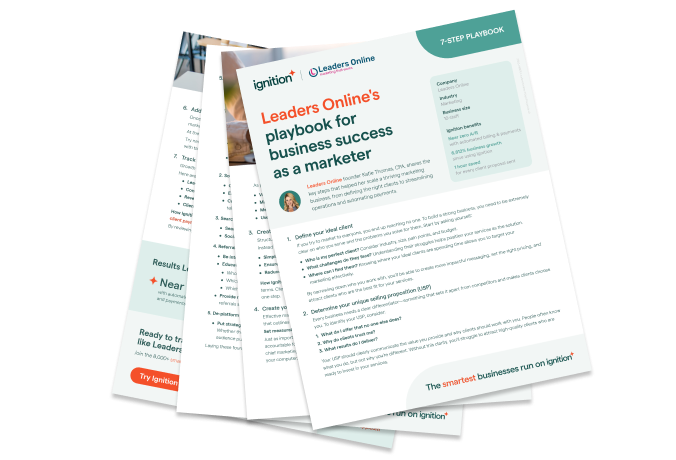 - Proposals became effortless. Instead of manually creating agreements and waiting for clients to approve them, Ignition allows Leaders Online to send digital proposals with clear scope, pricing, and payment terms.