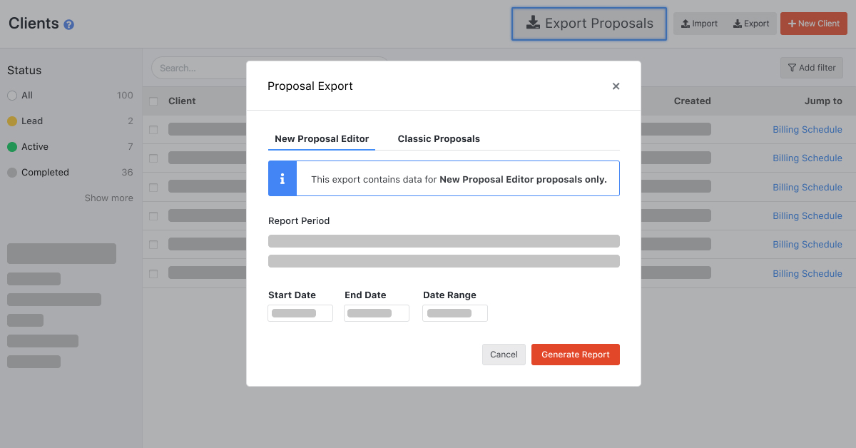 From the Clients tab, you can now draft proposals for multiple clients in just a few clicks.