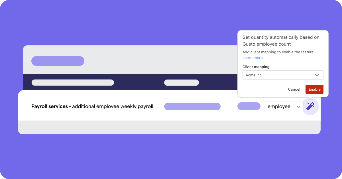 Our Gusto integration will also help you Simplify billing for Gusto software soon. You'll be able to automatically calculate your client’s monthly Gusto subscription cost based on real-time employee headcount. Stay tuned!
