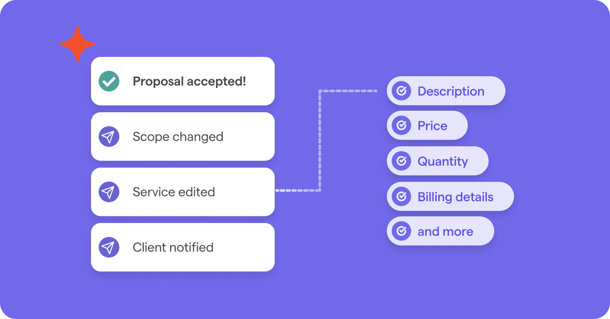 Get notified of important client activity updates in real-time — like when a proposal is accepted — ensuring no opportunity is missed and client engagements run smoothly.