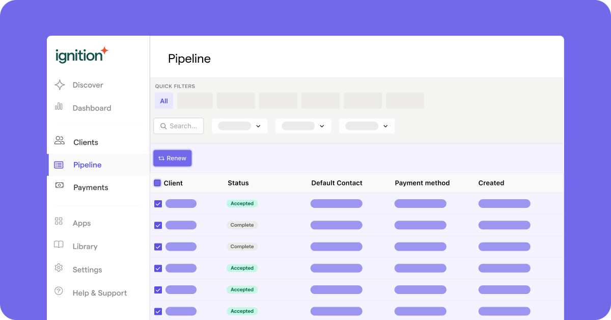 Setting up and managing your clients in Ignition is now faster and more efficient than ever. View all your existing clients from your connected apps in Ignition and import them in bulk to speed up your client engagements.