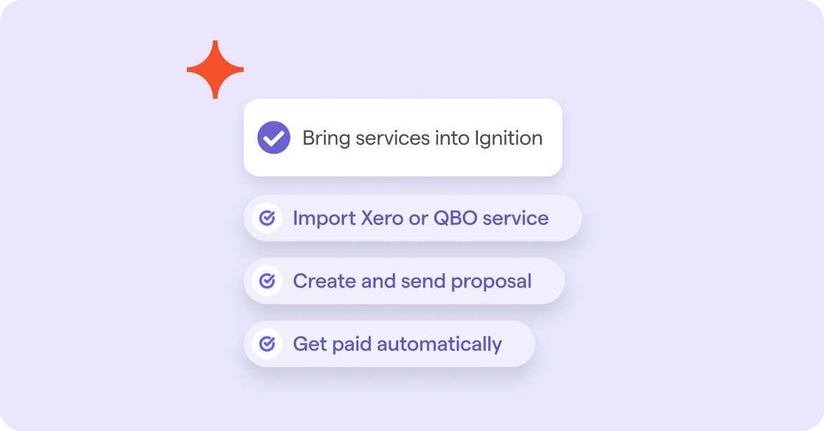 Get started faster by instantly importing your services into Ignition from Xero or QuickBooks Online.