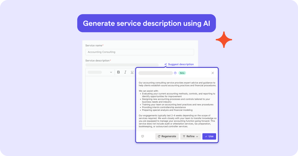 Struggling to communicate all the value you’re providing to clients? You can now quickly create professional service descriptions using AI within Ignition to save time. Create or refine your services with ease and put you and your clients on the same page from the start.