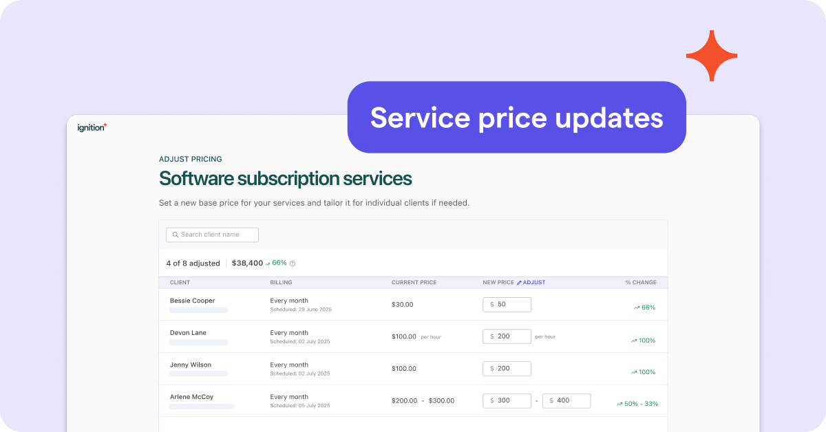 Now in Ignition, you can effortlessly increase prices for multiple clients at once to simplify renewals, improve pricing consistency and grow profitability.