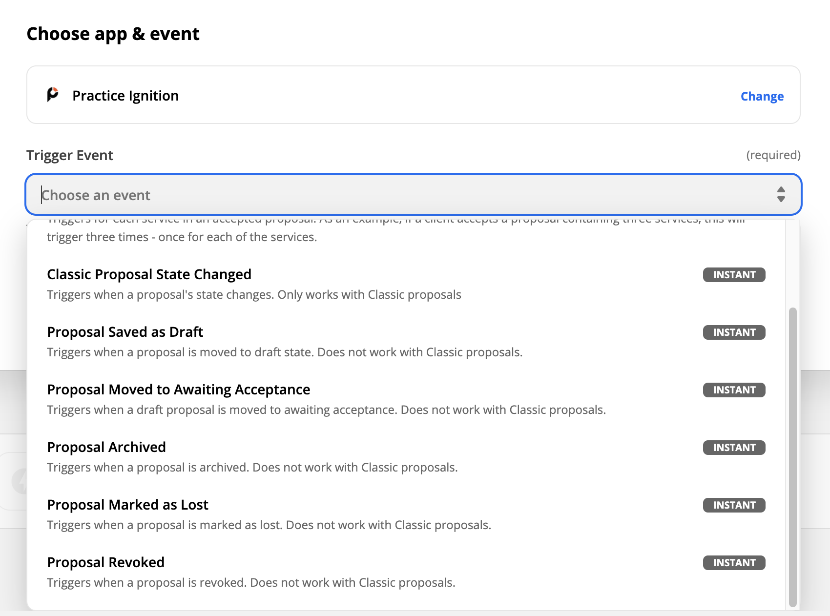 We've improved our Zapier integration for the New Proposal Editor, with five new Zapier triggers to automate your workflow. For example, you can update your sales pipeline automatically when a proposal is sent or when a deal is lost, or send an internal email or notification when a proposal is sent out to a client. So if you've been using the "Proposal State Change" trigger to automate your workflow using the Classic Proposal Editor, you can now do the same using our New Proposal Editor!