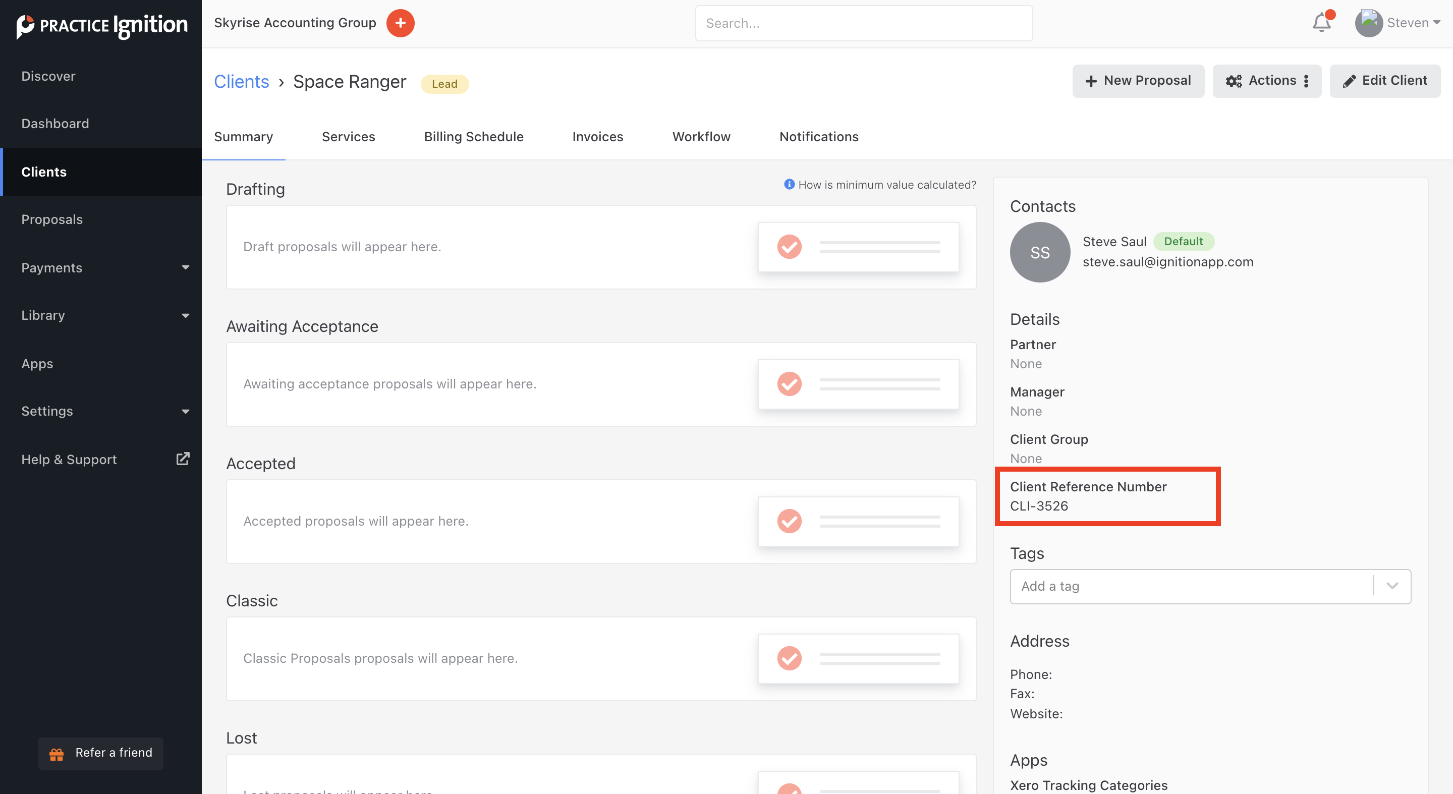 Practice Ignition aims to be as automated as possible, and most of your clients will have an email address, but for those few who don’t (and still operate entirely by snail mail) you can now create proposals for these clients without adding an email address.